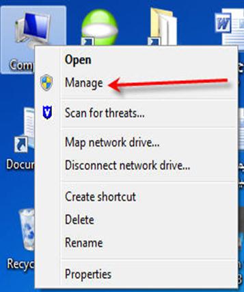 ۱- روی my computer کلیک راست نموده و گزینه manage را انتخاب کنید